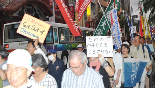 沖縄労組交流センターの仲間は日本IBM・ビジネスサービス労働組合支援共闘会議のニュースを1千部配布し、沖縄大学学生自治会のビラも500枚が配布された。青年労働者と学生の闘いを呼びかけるビラは圧倒的な注目を浴びた。沖縄全島ゼネストへ向けた新たな闘いが開始された。