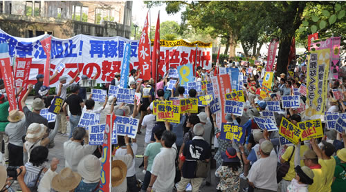 続いて沖縄大学学生自治会の赤嶺知晃委員長が「すべての怒りをゼネストへ!」と決意を語り、斎藤郁真全学連委員長は「安倍首相を広島からたたき出すデモをしよう」とアピールした。