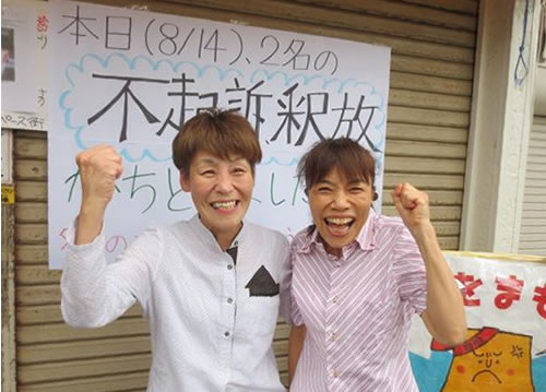 8月14日、障害者就労支援事業所「オープンスペース街(まち)」の仲間2人の釈放がかちとられた。6・1不当捜索以来2カ月半。動―反動―動の階級的激突攻防で実力でもぎりとった大勝利だ。同日夕方、彼女らのホームグラウンドである東京・練馬区の「街」に2人が相次いで到着すると、釈放の報を聞いて駆けつけた作業所の利用者や仲間たちが歓呼の声で迎えた。星野暁子さんらが2人と次々抱き合い、勝利を分かち合った。