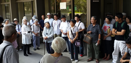 傍聴団は、一斉に「原告の意見陳述を聞かずに何を判断するんだ」「原告の発言を禁止することは予断と偏見があるからだ」「発言禁止こそ戦時裁判だ」と追及した。