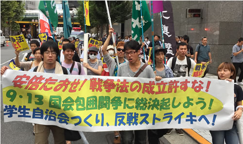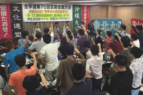 9月2日〜3日、全学連第76回定期全国大会が東京都内で行われた。戦争法案の参院採決策動をめぐる安保国会決戦の真っただ中で開催され、全国学生運動が「反戦ゼネストの実現へ!」という鮮明な方針で今秋決戦にうって出る出発点を築き、強力な団結を固めて大成功した。大会終了後にはただちに国会デモ、相模補給廠爆発事故弾劾闘争へ決起した。