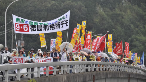 9月5日、翌日の徳島刑務所包囲デモを前に徳島市・とくぎんトモニプラザで「星野さんをとり戻そう!全国再審連絡会議2015年総会」が開かれた。全国29救援会、180人が一堂に会し、2012年以来3度目となる刑務所デモへの総決起集会としてかちとられた。