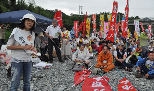 連帯のあいさつとして、全国労組交流センターの辻川慎一代表(動労水戸副委員長)と婦人民主クラブ全国協議会の三浦正子代表が立った。辻川さんは、3・11大震災と原発事故に際し、労働組合として被曝労働拒否を闘うこと、星野さんの存在と闘いと向き合おうと徳島刑務所デモを決めたと語り、「今の時代の主人公として文昭さんと生き抜き闘いぬこう」と呼びかけた。三浦さんは、9・3相模原緊急闘争を報告し、「全国津々浦々で婦民の支部をつくり、その闘いで星野さんを取り戻す」と語った。