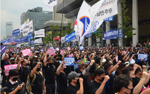 この闘いは同時に、韓国を支配する一握りの巨大財閥と全面対決し、その支配を実力で覆す闘いだ。1%の支配階級が99%の労働者人民の命と生活を犠牲にして肥え太る現実への、激しい怒りの決起である。目指されているのは、「命より金」という社会のあり方を根底から変える、労働者階級による革命だ。