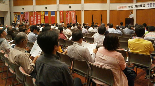 9月13日、京都府舞鶴市総合文化会館で、地元自治体労働組合が呼びかける高浜原発再稼働阻止の集会が、200人が参加して大成功しました。高浜原発から11㌔の舞鶴市で、労働組合が中心となって開催した画期的な集会です。地元舞鶴市民も多く参加しました。