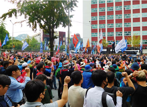 チョサンス公共運輸労組委員長は「軍事独裁時代に回帰しようとする政府を阻止するには、独裁政権を倒した1987年労働者大闘争のような闘争が必要だ」と訴え、10月15日に公共部門の労働者がこぞってストライキに突入することを決定したと報告した。