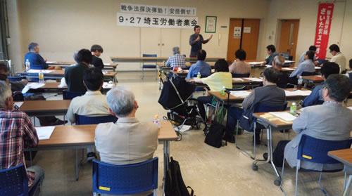 さいたまユニオンの田畑典保委員長が集会の基調を提起。鈴木達夫弁護士が「国会闘争の総括と展望」と題して講演を行い、来年の参院選を闘う決意を語った。大石運輸分会、野崎工業分会の仲間が発言し、10・24大石運輸包囲闘争への結集を訴えた。
