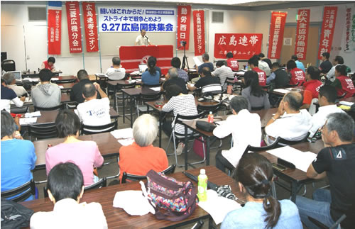 9月27日、広島国鉄集会が70人の結集で開催され大成功した。集会に先立ち広島連帯ユニオンの第28回定期大会が同会場で開かれた。
