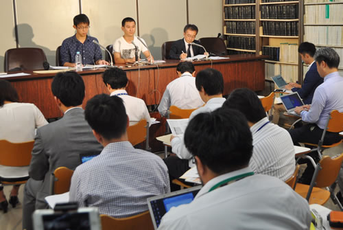 (写真 東京・霞が関の司法記者クラブで記者会見し弾圧粉砕・4学生奪還を宣言【10月2日】)