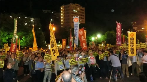 警察権力は国会前さながらに、米軍基地ゲートを中心に多数の機動隊バスを配置し、武装機動隊を動員し、ゲート前抗議には警察指揮官車から「公安条例違反だ」とがなりたてるなど異例の弾圧体制を敷いた。しかし現場労働者はそんなものはものともしない。ここでも国会決戦を引き継ぐ労働者の実力決起の発展と、安倍政権の恐怖を示した。国家権力と真正面から実力で激突する力を労働者は持っている。「絶対反対」と「階級的団結」で闘う路線を持つ指導部が登場できるか否かが、安倍打倒の核心問題だ。