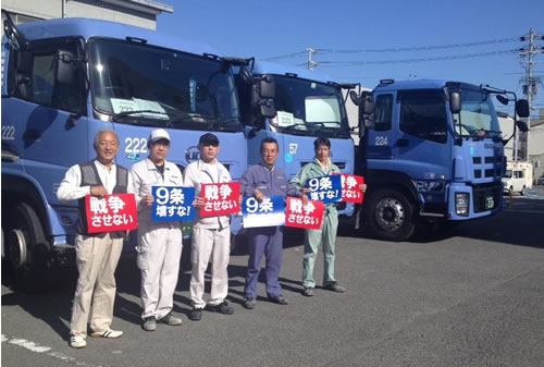 全日本建設運輸連帯労組関西地区生コン支部は9月11日、戦争法反対を掲げストに立ちました。