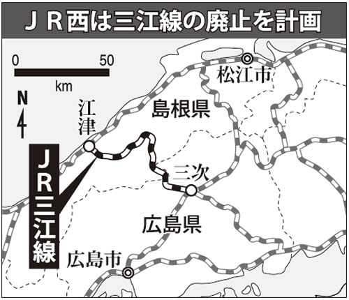 ローカル線廃止に突き進んでいるのはJR北海道だけではない。10月上旬、JR西日本は広島県三次(みよし)市と島根県江津(ごうつ)市を結ぶ三江(さんこう)線の廃止を検討していると広島・島根両県などの沿線自治体に通告した。17年9月にも同線を廃止するというのがJR西日本の狙いだ。