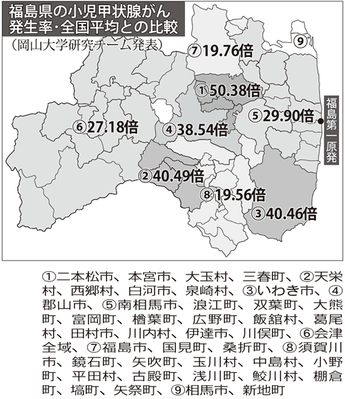「被曝による過剰発生」 岡山大教授ら論文発表 福島の小児甲状腺がんは全国平均の実に20〜50倍