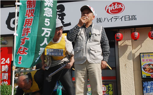 集会後、反対同盟と支援連は千葉市繁華街で、緊急5万人署名の情宣活動に立ち、軍事空港粉砕、農地死守を訴えた。