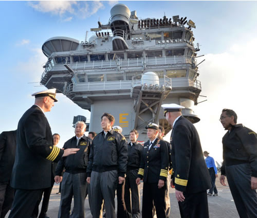 10月18日 安倍が海自観艦式に出席。その 後、米空母ロナルド・レーガンに乗艦