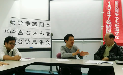 10月23日、徳島市内で動労千葉争議団長の高石正博さんを招いて、囲む会を開催しました。高石さんからは、6・30最高裁判決の意義について語っていただきました。