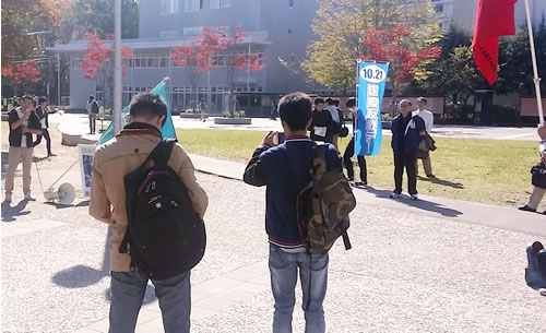10月16日、仙台市の川内北キャンパス中央で東北大学学生自治会による「4人の仲間を取り戻そう! ストライキで戦争をとめよう!」緊急集会が開かれました。