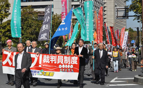 11月6日昼、東京都心で「裁判員制度はいらない!大運動」主催のデモが170人の参加で闘われた。