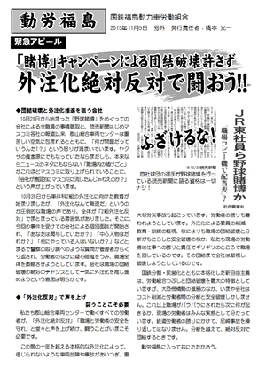 郡山総合車両センターでまかれた、「賭博」キャンペーンをはね返す動労福島のビラを全文掲載して紹介します。(編集局)