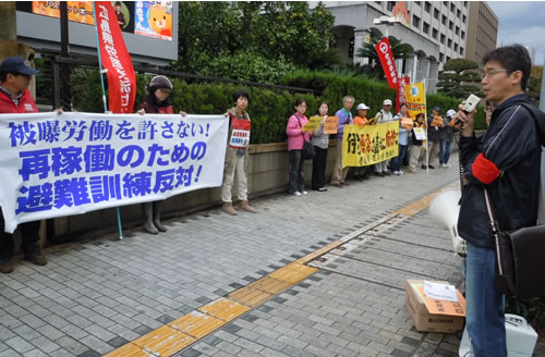 伊方原発 再稼働のための訓練反対 愛媛県職労を先頭に抗議 〝労働者も住民も被曝させない〟