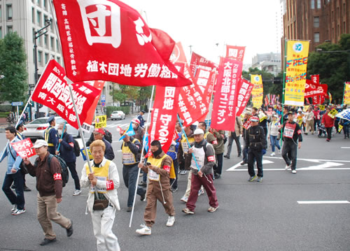 高槻市による植木団地からの追い出しは、安倍政権が、すべての労働者を非正規職にして、首切り「自由」・低賃金の使い捨てにし、戦争で命まで奪おうとしているのと同じです。だから、私たちは、全国・世界の仲間と団結し、誇り高く闘い生きぬく決断をしたのです。