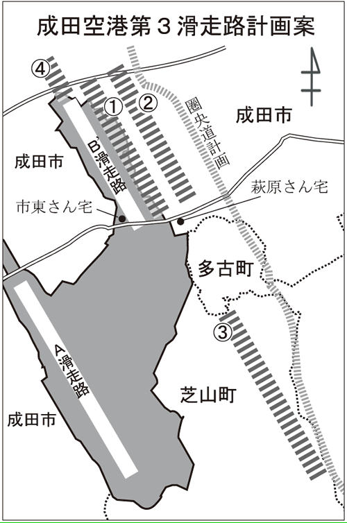③はB,から2㌔も南に下った芝山町に3500㍍の滑走路を造るというもの。