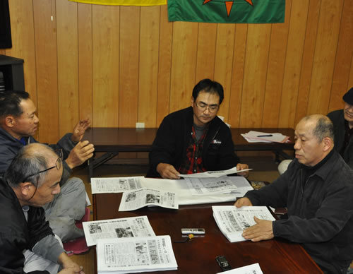 反対同盟と支援連の訪問は行く先々で歓迎され、会話が弾み、ニュースが熱心に読まれた。「第3滑走路によるこれ以上の騒音や地域破壊は認められない」「かつては空港反対と言っていた石毛が今は推進とは、それだけで許せない」「農地を強制的に取るなんて間違っている」という声が相次いだ。