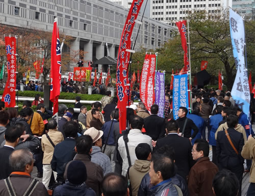 都労連・武藤弘道委員長は集会で「大阪・橋下との対決と並ぶ命運のかかった決戦」と言った。だからこそ越年も辞さず絶対反対のストで闘うべきだった。「交渉で自主決着できたから良かった」はごまかしだ。