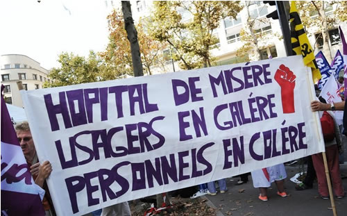 (写真 病院労働者が「医療の惨めな現状」「患者も労働者も怒っている」という横断幕を掲げストライキ【11月23日 フランス・レンヌ】)