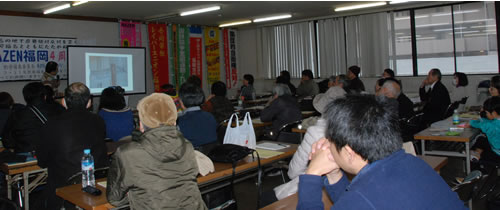 質疑応答、参加者の決意表明が行われ、最後にNAZEN福岡事務局が、「3・11反原発福島行動に参加しよう! 九州にも動労総連合をつくろう! 全国の原発、とりわけ伊方原発の再稼働を止めよう! 福島と連帯しNAZENを広げよう!」と行動方針を提起し、団結ガンバローで締めくくりました。