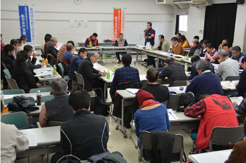 支援共闘呼びかけ人で国労秋田闘争団の小玉忠憲さんが、総会でかちとるべき課題について提起した。動労水戸は、11・1労働者集会に向けて全国各地で開かれた国鉄集会のうち約30カ所に組合員を派遣し、被曝労働拒否を労働組合の課題とすることを訴えてきた。この闘いが、放射能に汚染された物資の運搬を拒否して闘う労働組合との結合を生み出し、9月13日の京都府舞鶴市での地元自治体労組を中心とした高浜原発再稼働阻止の集会や、伊方原発再稼働に向けた11月8日の「訓練」に対する愛媛県職労を軸とする反対闘争をつくり出している。小玉さんはその意義を強調して、「被曝と無関係な労働者は一人もいない。被曝労働拒否をすべての労働組合の正面課題に据えよう。その先頭で闘う動労水戸を守ることは、全労働者の共同の課題だ」と力説した。