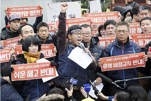 民主労総 12・16ゼネストへ進撃 パククネ打倒へ総決起 ハンサンギュン委員長 「拘束されても闘う」