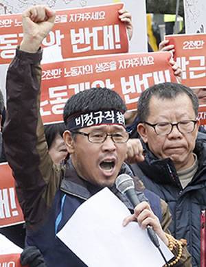 誰の誤ちですか? 政府は、低賃金体系をつくって解雇を容易にできてこそ、企業と経済を生かすことができると話しています。労働者が死ななければ企業が生きられない政策が、正しい法であり政策ですか?