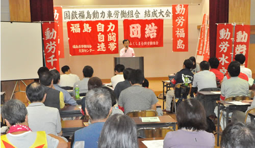 南(JR関連) 1047名解雇撤回闘争の先頭で闘ってきた国労の仲間とJR関連下請けの労働者が団結して結成しました。正規・非正規を問わず、会社の壁を越えて労働者が同じ組合に結集しています。国労内や日本共産党との激しい党派闘争に勝ち抜いて「階級的利害を体現する結集軸を示す」と結成されました。