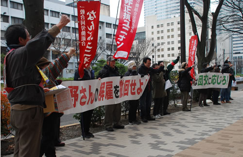 (写真 寒さを吹き飛ばし「解雇を撤回しろ!」と熱いシュプレヒコール【12月23日 晴海局前】)