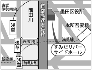 すみだリバーサイドホール(東京都墨田区吾妻橋1―23―20)