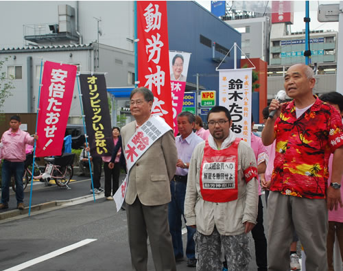 6月22日の参院選公示以後、「新しい労働者の政党をつくろう」と訴える鈴木たつお候補の街頭演説が、首都・東京を連日席巻している。安倍政権の意を受けた大手マスコミによる悪意に満ちた「鈴木無視」の攻撃を打ち破り、鈴木候補の怒りに満ちた熱烈な訴えが無数の労働者や学生を引き寄せている。「こういう候補者を待っていた!」「安倍の戦争政治も日本共産党の転向も許せない。鈴木さんに入れます」といった声がどんどん寄せられている。