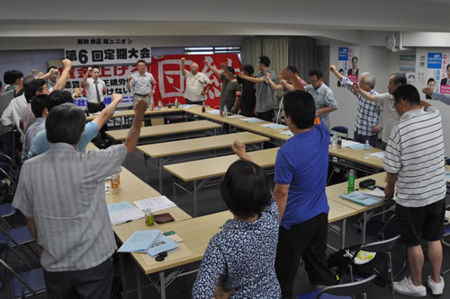 参院選決戦の熱気が冷めやらぬ7月18日、郵政非正規ユニオン第6回定期大会が東京・台東区で開催された。会場には組合員と支援の労働者30人が結集し、「5年間の苦闘と勝利を土台に組合員の拡大に大胆に挑戦しよう! 輝かしい進撃の6年目に踏み出そう!」と誓い合った。