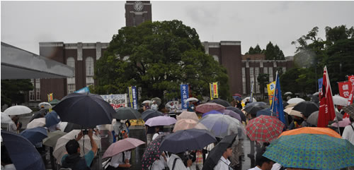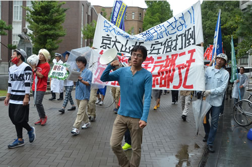 集会後の300人が決起した学内デモ―京大包囲デモには多くの京大生と周辺住民が応援を寄せた。