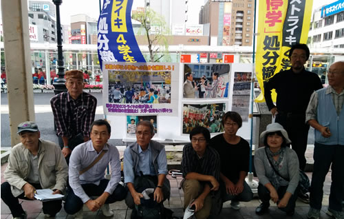 処分撤回の訴えに、お札のカンパがドンドン集まった。新潟大学の教員OBは「大学でそんなことをやっちゃいけない」と話し、40代の労働者は「学生のがんばりに期待したい」と5千円もカンパ。中学生や高校生も積極的に署名に応じた。