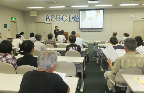 9月10日に胎内市、11日に新潟市江南区で、ドキュメンタリー映画「A2―B―C」上映会を行い、 地元の労働組合や福島からの避難者など120人が参加しました。