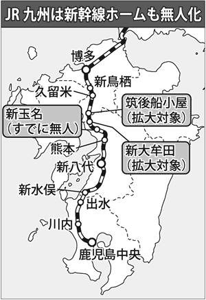 鉄道事業体とは言い難いこの安全無視の感覚は驚くべきものだ。こうした姿勢は、株上場でさらに露骨になっていく。安全破壊と一体で地方切り捨ても一気に進む。16年3月のダイヤ改定で、JR九州は在来線の9駅を無人化し、全567駅のうち半数以上の291駅が無人となった。15年のダイ改では32駅が無人化された。また、全国に先駆けて強行した九州新幹線の新玉名駅ホームの無人化に続き、新幹線の筑後船小屋駅、新大牟田駅のホーム無人化も青柳社長は公言した。