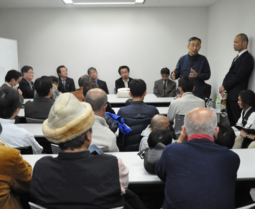 (写真 裁判後の総括集会では田中委員長が17年の方針を提起)