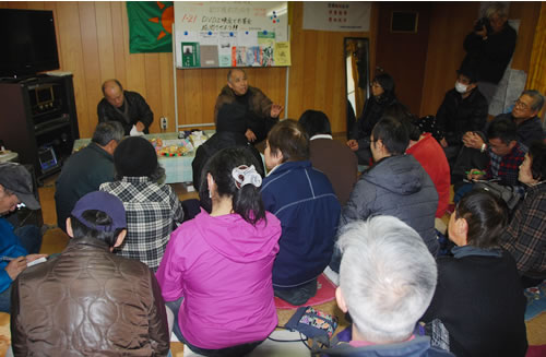 1月21日、三里塚現地でDVD上映会が開かれた。三里塚芝山連合空港反対同盟は新年旗開きで、天神峰の市東孝雄さん宅離れを拠点とする決戦本部の発足を宣言した。この本部の呼びかけによる、農地強奪強制執行を阻止するための現地企画の第一弾だ。この日は孝雄さんの父・市東東市さんの命日にあたる。