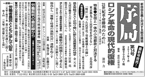 紹介 序局第14号 ロシア革命の現代的復権 都議選勝利に向け特集 国際連帯の教訓が満載