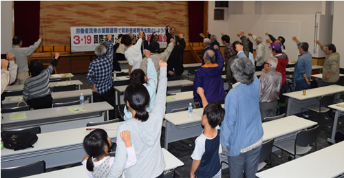 3月19日、国際連帯・共同行動沖縄の結成総会が那覇市内の沖縄県青年会館で40人の結集でかちとられました。