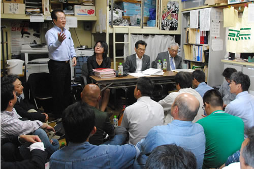 (写真 裁判後、組合事務所で総括集会【5月19日 水戸市】)