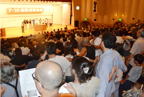 7月30日、東京・大田区民センターで「国際連帯共同行動研究所」設立準備委員会が主催する国際連帯集会が開かれた。「戦争・民営化と闘う労働運動をよみがえらせよう」「世界の労働者階級の国境をこえた団結=新しいインターナショナルをつくろう」の呼びかけのもとに510人が結集した。