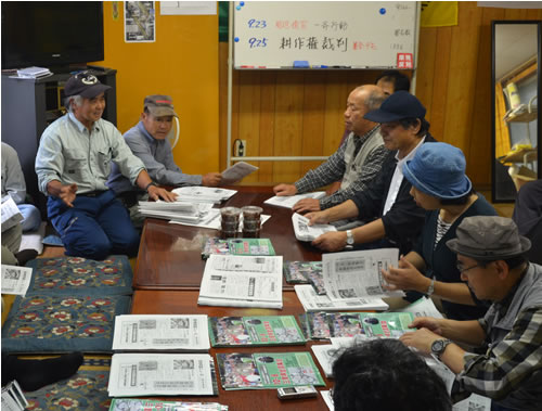 市東さんは「安倍は改憲に向け解散総選挙を叫んでいる。説明会の動きなどを注視しながら空港反対を訴えよう」と一日の奮闘を呼びかけた。今回の「反対同盟ニュース」第48号は、市東さん自身が10・8参加を住民に呼びかけている。
