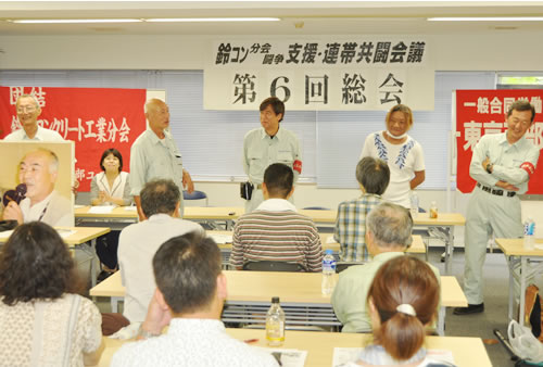 鈴コン分会の職場闘争が意気高く始まっています。第二ステージは「非正規職撤廃」の闘いです。生コン産業の最重要業務は、ミキサー車運転手が担っています。ところが鈴コンでは日給制の「臨時労働者(アルバイト)」なのです。鈴コンの闘いは、当初から「俺たちは奴隷じゃない」という根底的な怒りの闘いです。私たちは非正規撤廃の闘いの先頭で闘います。労働者階級としての誇りにかけて、「義理と人情」にあふれる新しい労働者の社会をつくるために、全国に労働組合を甦らせる仲間達と共に、東京の先頭で闘うことを誓います。「非正規が闘って勝った」という大運動をつくりましょう。